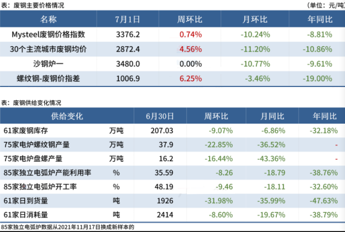 目前各地減產、限產有所擴大,成材產量下降,廢鋼需求亦同步減弱,勢必制約廢鋼價格的表現(xiàn)。從鐵廢差來看,現(xiàn)廢鋼價格略低于鐵水成本,廢鋼經濟效益有一定恢復,不過從螺廢差、板廢差來看,鋼廠虧損情況延續(xù),用廢積極性不強。值得一提的是高溫雨水天氣嚴重影響廢鋼的運輸、加工,甚至是產出,故廢鋼供應端釋放有限。在供需雙弱及鋼企虧損的情況下,預計本周國內普碳廢鋼市場價格將以震蕩偏弱運行為主,區(qū)域間走勢或有一定分化。